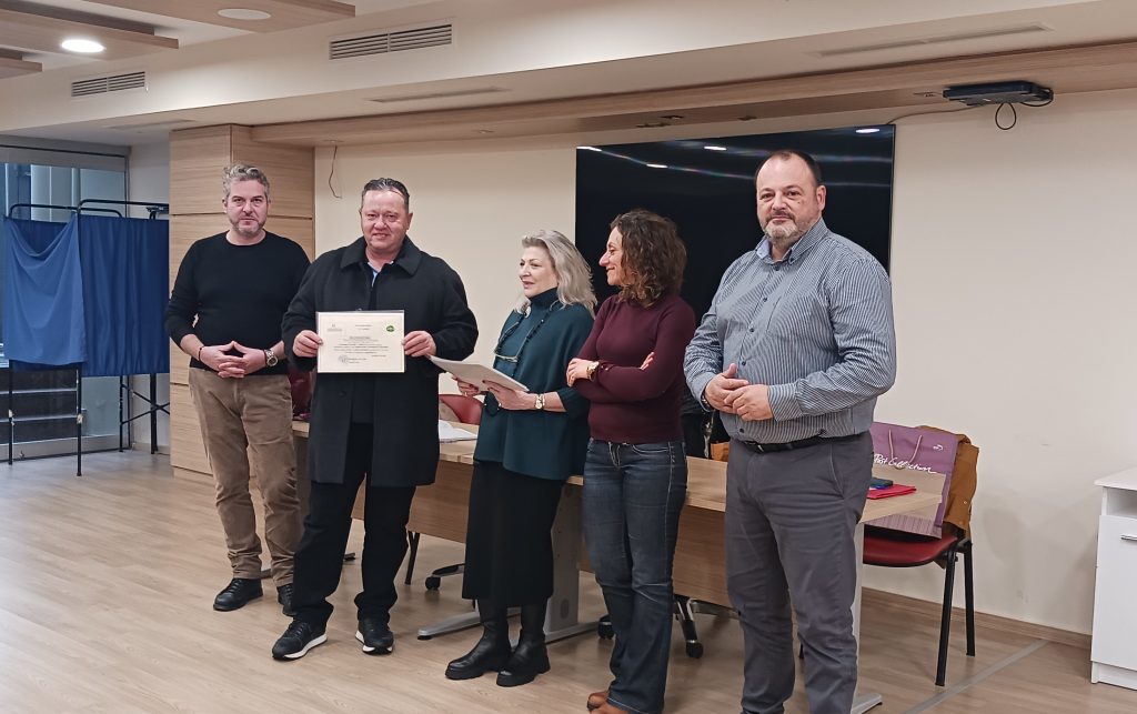 Μετά την ολοκλήρωση του θεωρητικού και πρακτικού μέρους του προγράμματος, το απόγευμα της Παρασκευής 28 Νοεμβρίου 2025 ολοκληρώθηκε επίσημα η υλοποίηση του επιδοτούμενου προγράμματος κατάρτισης της ΔΥΠΑ στον εμβολιασμό δενδρωδών καλλιεργειών στο Ν. Άρτας και στην αίθουσα του Επιμελητηρίου Άρτας δόθηκαν στους καταρτιζόμενους τα πιστοποιητικά επαγγελματικής κατάρτισης από την Υποδιευθύντρια του Κέντρου Δια Βίου Μάθησης (ΚΔΒΜ) Ιωαννίνων της ΔΥΠΑ, Άννα Τσόγκα, και τον Γεώργιο Λαδά, συνεργάτη του ΚΔΒΜ Ιωαννίνων της ΔΥΠΑ, οι οποίοι ευχαρίστησαν το Επιμελητήριο Άρτας για την αγαστή και εποικοδομητική συνεργασία.